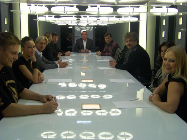 За столом в студии на сьемках программы 12 канала ДТВ,эфир нашей программы конец ноября