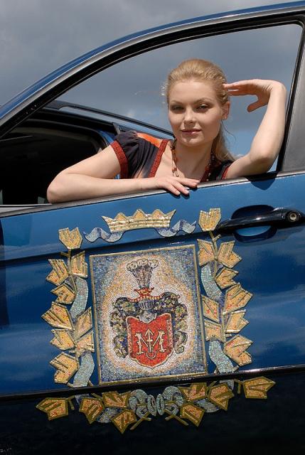 Юля - певица из театра Оперетты у мозаичного герба ...