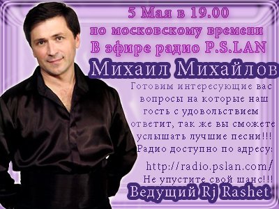 Заходите по ссылке на афише и 5 мая в 19-00 по мос.времени в режиме СКАЙП ОБЩЕНИЯ в прямом эфире из Москвы я с Вами... http://radio.pslan.com/