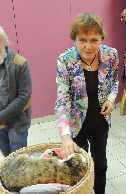 На открытии-презентации моей фотовыставки "Звёздные питомцы" в Санкт-Петербурге 6 октября 2013. Знакомлюсь с эрмитажной кошкой Саскией!
