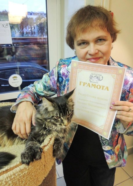 На открытии-презентации моей фотовыставки "Звёздные питомцы" в Санкт-Петербурге 6 октября 2013. Мэйн-кун одобряет!