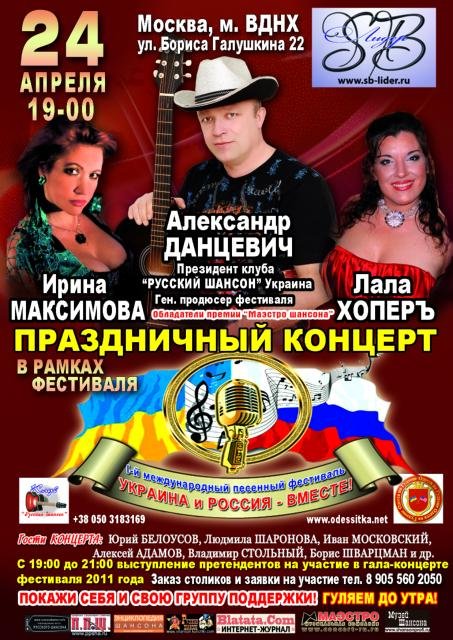 Проездом в г. Москве! Праздничный концерт в рамках международного фестиваля авторской песни и шансона 'Украина и Россия - вместе!'! Приглашаю друзей Моего Фан Клуба! Каждому - фото на память и автограф на диск! Жду Вас! Давайте встретимся! ))) ?